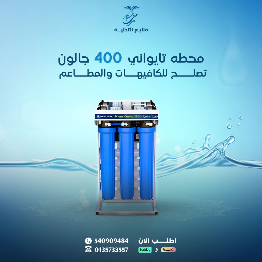 ابدأ الآن بتجهيز مطعمك أو كافيهك بمياه نقية وآمنة مع جهاز تحلية مياه كبير، اتصل بنا اليوم للطلب والاستفسار.