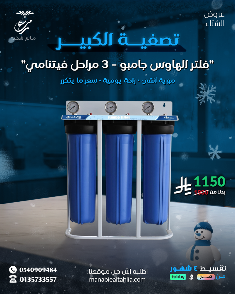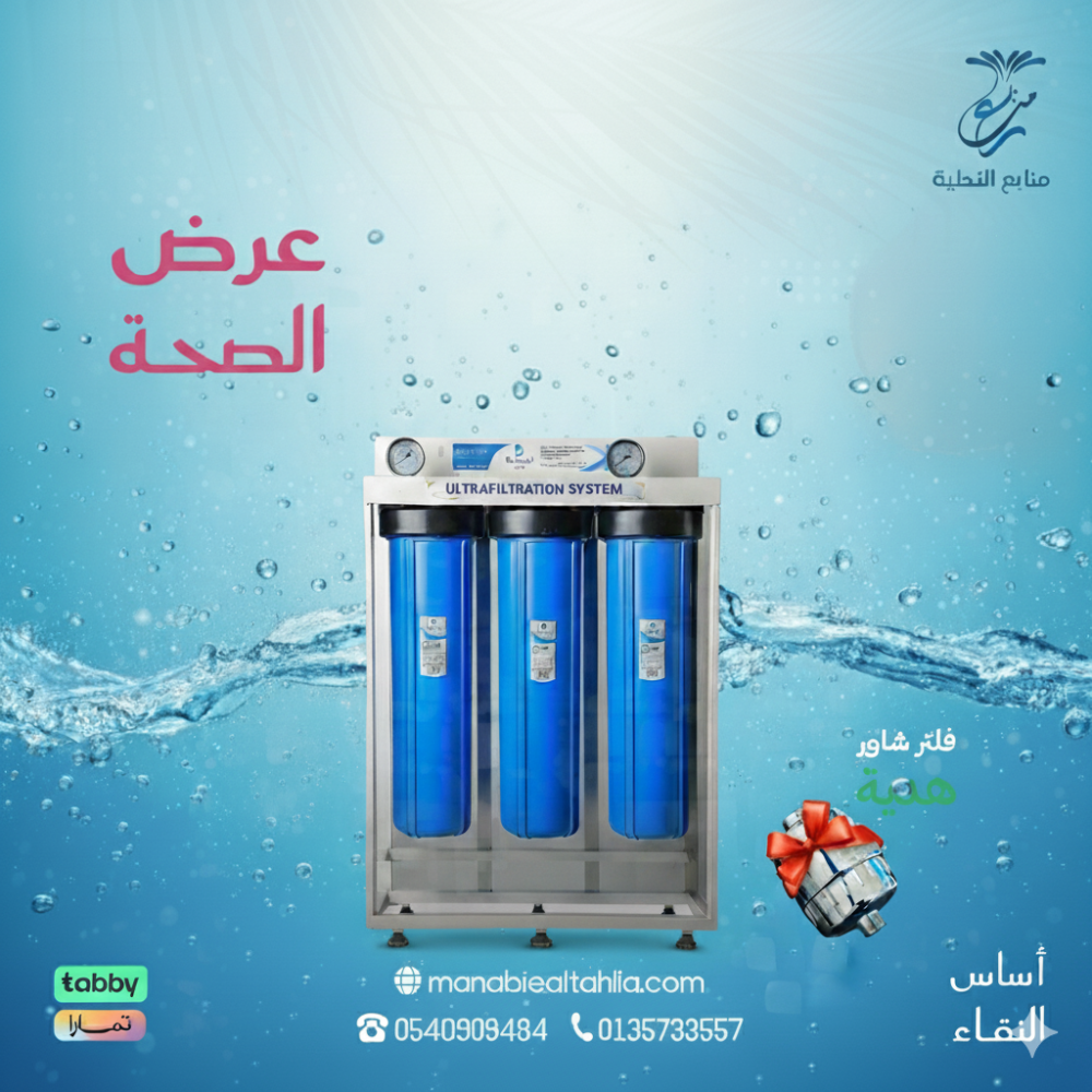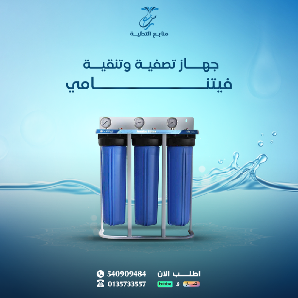 - فلتر تنقية الماء بفلترة ثلاثية المراحل تضمن إزالة جميع الملوثات للحصول على مياه صحية.